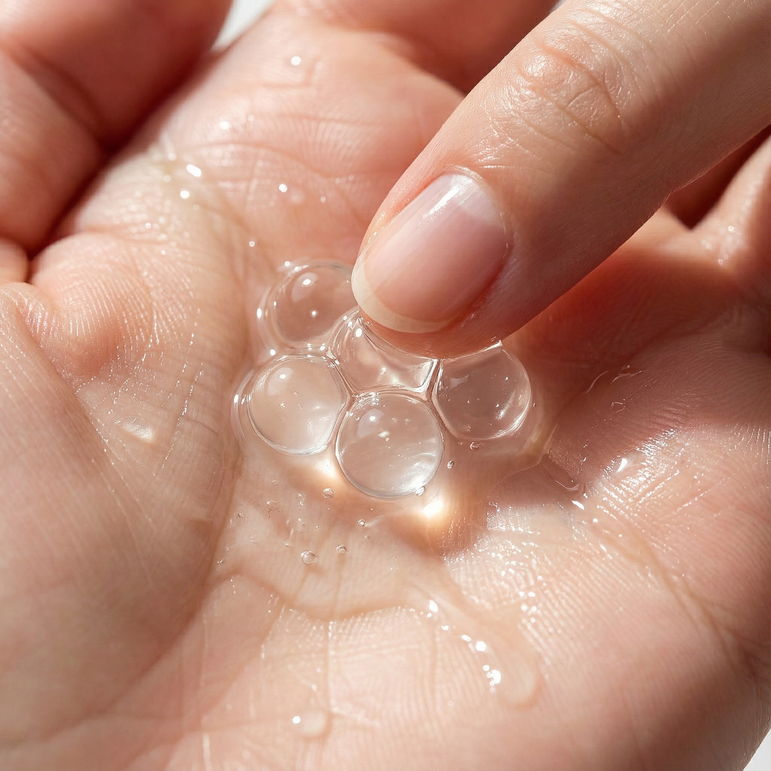 Pomp bolletjes in uw handpalm en druk ze fijn met uw vingertoppen. Voel ze barsten en vers, krachtig serum vrijgeven.